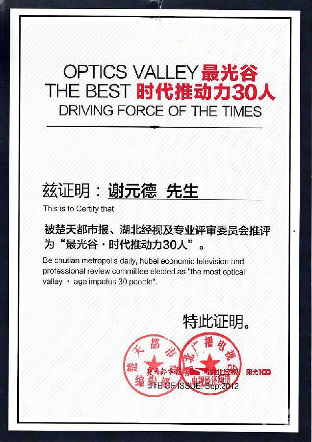特别贡献奖:中国光谷国际光电子博览会暨论坛组委会