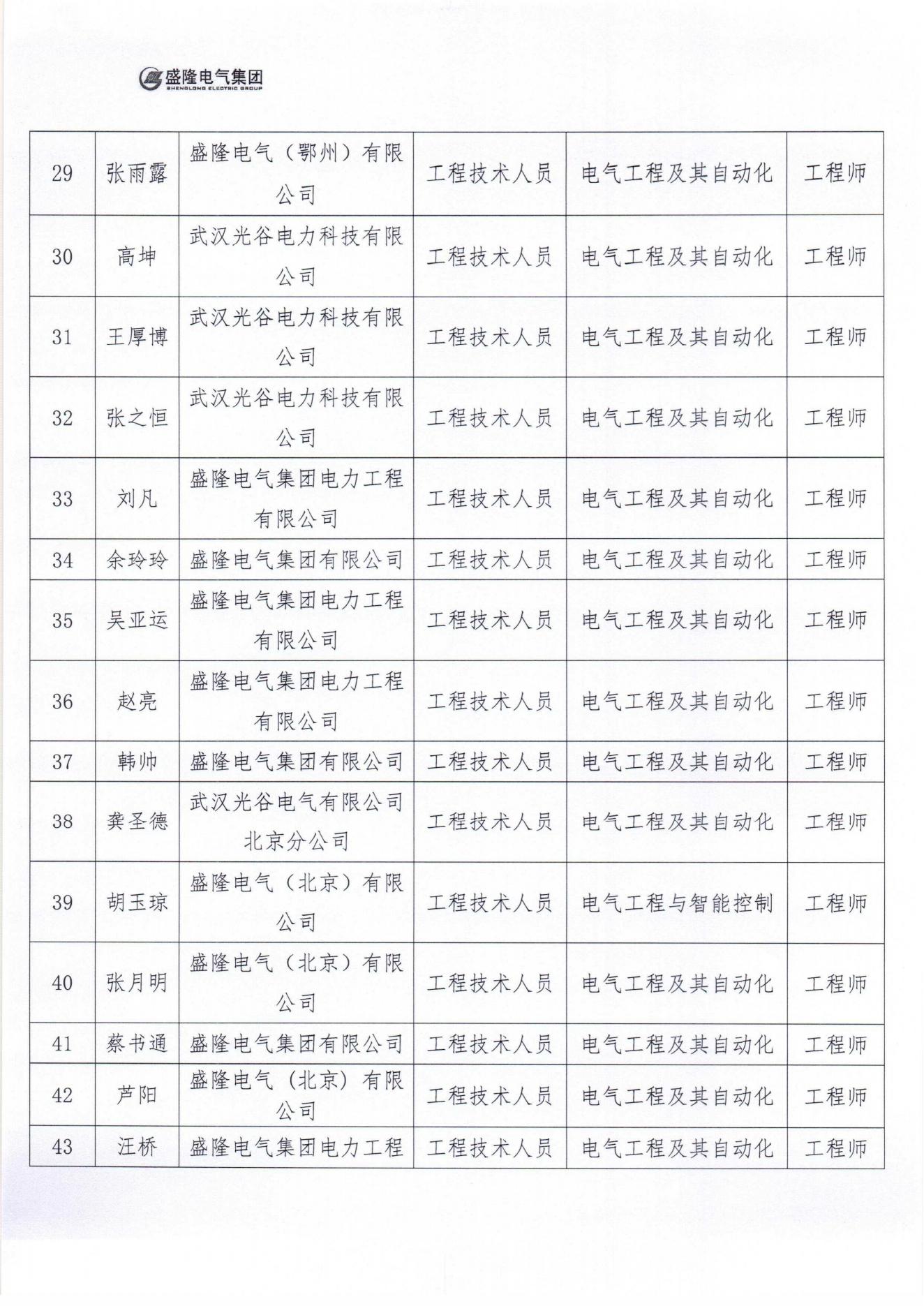 根据湖北省职改办《关于做好 2023 年度全省职称评审工作的通知》(鄂职改办 (2023) 49 号)的相关规定,现将参加 2023 年(下半年) 盛隆电气集团电气、机械专业技术职称评审人员名单进行评前公示 (详见附件)。公示时间为2023年11月16日-2023年11月20日。
